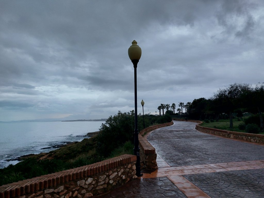 Con temperaturas suavizadas por la calidez de Mar Mediterráneo, y como suele ser habitual el Orihuela Costa, sin mucho viento, merece la pena pasear junto al mar bajo la lluvia disfrutando de las vistas de Cabo Roig, Campoamor, así como del sonido de las olas.